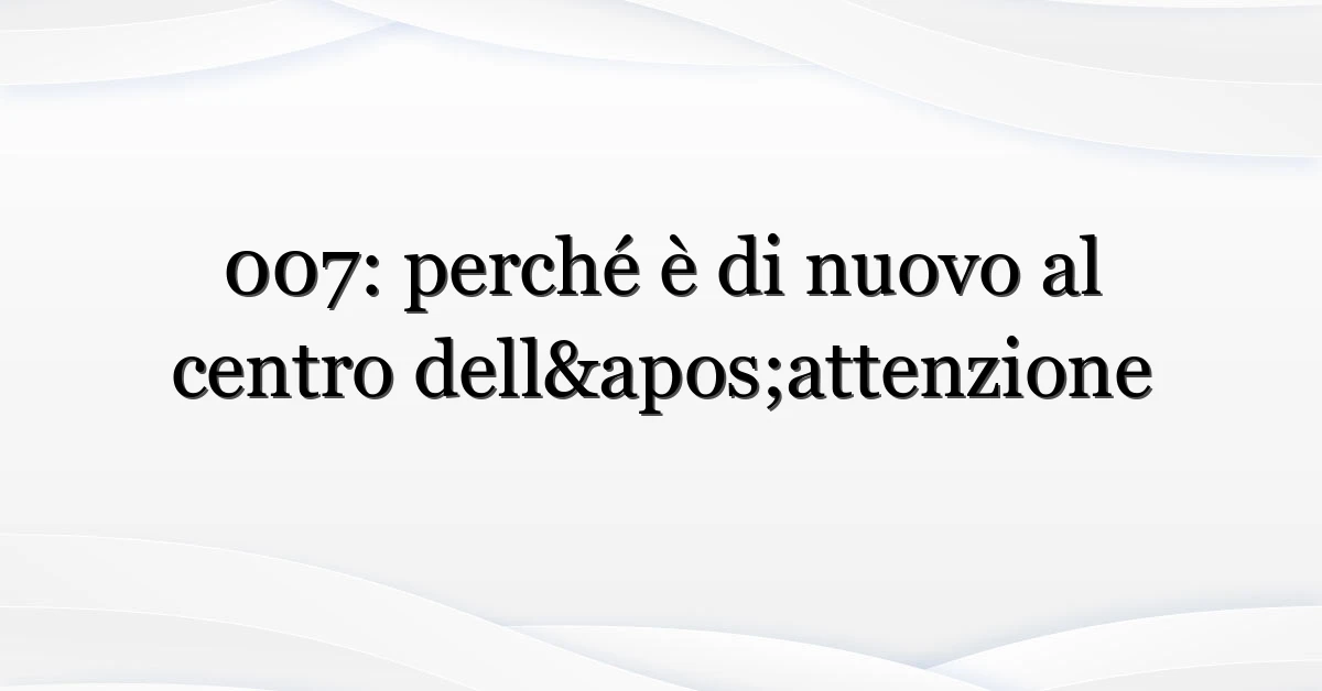 007 è tornato nelle ricerche italiane e non per caso. Forse avete visto un titolo su Twitter, forse una clip rimbalzata nelle storie Instagram — o magari c’è stata un’intervista che ha riaperto il dibattito sul prossimo volto dell’agente segreto. Ora, ecco dove diventa interessante: in meno di una settimana il traffico di ricerche su “007” è salito perché combinazione di rumor sul casting, nuove uscite in streaming e ricorrenze legate alla saga. Questo articolo spiega perché questo ondata di curiosità sta accadendo in Italia, chi la sta cercando e cosa potete fare subito se siete fan (o giornalisti curiosi).