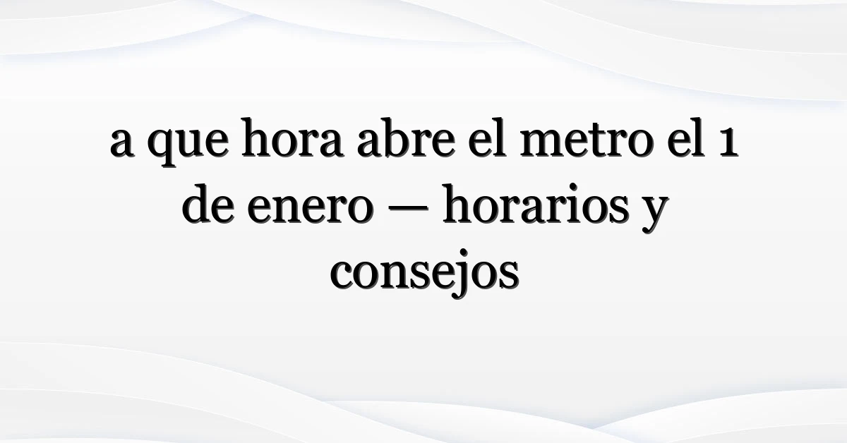 Resumen de lo esencial: la respuesta a “a que hora abre el metro el 1 de enero” no es universal. Depende de la ciudad y de la planificación del operador. Comprueba la web oficial de tu metro y lleva un plan alternativo si tu viaje es urgente.