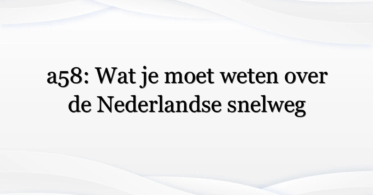 De a58 is een belangrijke oost-westverbinding in het zuiden van Nederland. Ze verbindt kustregio’s met industriële en stedelijke centra en speelt een grote rol in zowel woon-werkverkeer als logistiek. Voor een technische en historische samenvatting zie de Wikipedia-pagina over de A58.