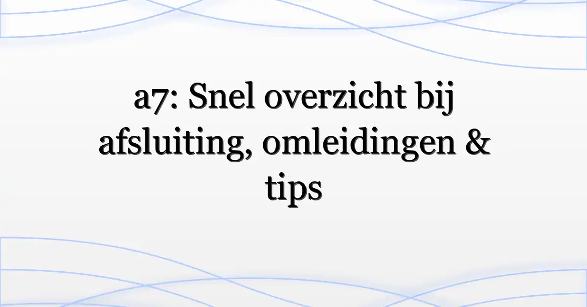 “Veiligheid gaat altijd voor snelheid,” zegt een regionale wegbeheerder — en dat is precies waarom je dit moet lezen als je straks de A7 overweegt. Kort en concreet: de a7 is op bepaalde trajecten afgesloten bij recente incidenten en dat veroorzaakt flinke omleidingen en vertragingen; dit artikel legt uit waarom, welke bronnen je direct moet checken, en wat je praktisch doet om tijd te winnen of veilig thuis te komen. De term a7 afgesloten circuleert veel in lokale bronnen en sociale kanalen; hier haal ik de feiten bij elkaar en geef ik werkbare stappen.