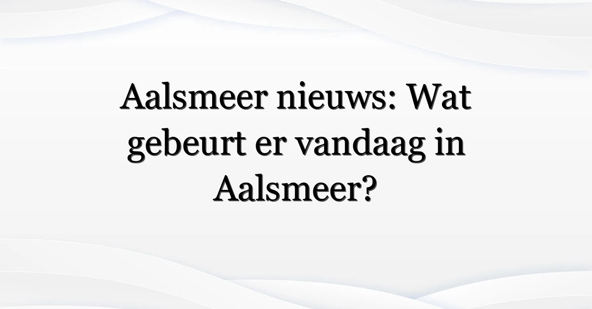 Hier zijn realistische voorbeelden van wat je kunt tegenkomen als je “aalsmeer vandaag” zoekt — gebaseerd op veelvoorkomende nieuwsitems.