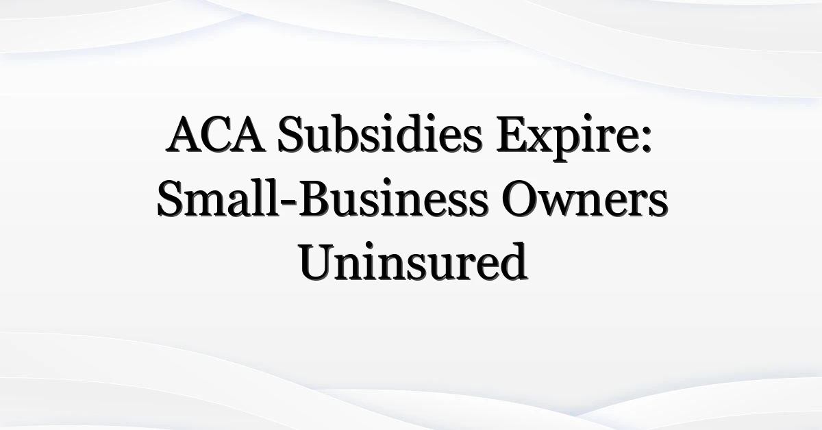 By a staff reporter. The clock ran out this month on a set of federal premium subsidies tied to the Affordable Care Act, and the fallout is landing squarely on small-business owners who relied on the help to afford marketplace coverage. Many will see their monthly premiums spike or vanish altogether — and some will become uninsured.