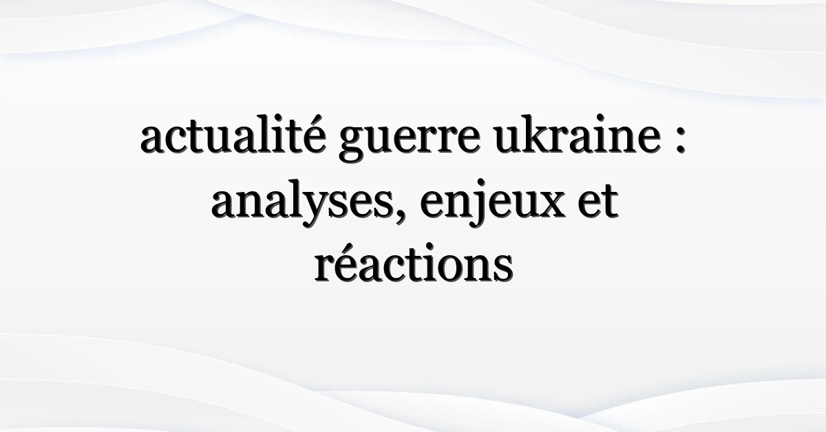 Pour un panorama factuel et historique, consultez la page de synthèse sur la guerre russo‑ukrainienne sur Wikipedia. Pour des mises à jour terrain et des dépêches, les agences comme Reuters offrent une couverture continue et vérifiée.