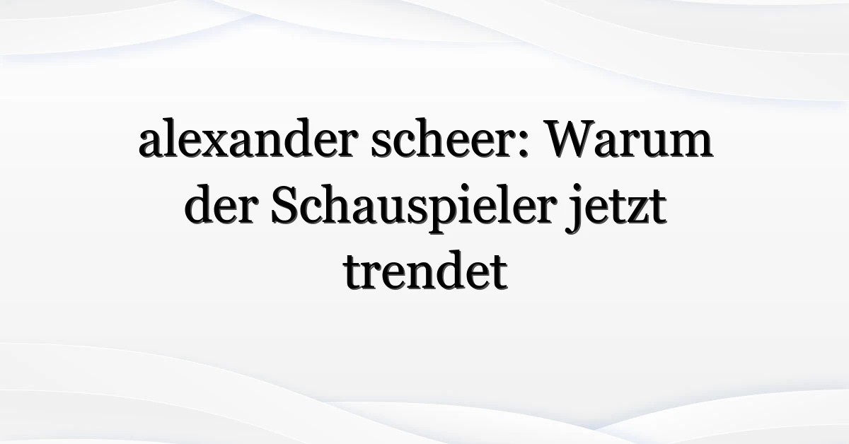 alexander scheer steht gerade wieder im Fokus — und zwar nicht nur bei Filmfans, sondern bei einem breiteren Publikum in Deutschland. Warum genau? Kurz gesagt: eine Kombination aus neuer Sichtbarkeit (Filmpremieren, Festivalauftritte), Gesprächen in den Medien und Social-Media-Momenten hat Suchanfragen nach seinem Namen angekurbelt. In diesem Text schaue ich mir an, wer nach ihm sucht, was die emotionale Treiber sind und was Sie konkret tun können, wenn Sie mehr über alexander scheer erfahren wollen.