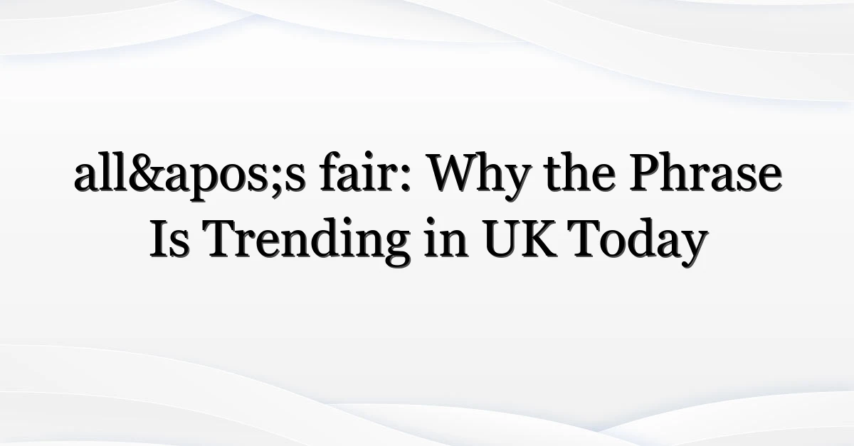 Something about the line all’s fair has suddenly grabbed attention across the UK. It started as a throwaway phrase in a viral clip, but quickly ballooned into wider debate — about ethics, language and whether the saying is ever a good defence. If you’ve spotted the phrase in headlines, tweets or on TV and wondered why it keeps popping up, you’re not alone. This piece breaks down why all’s fair is trending, who’s looking it up, what emotions it taps into, and what practical next steps readers can take when they encounter the phrase in public life or online.
