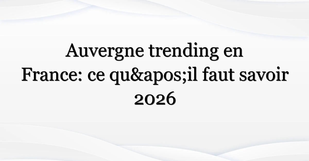 Auvergne revient sur le devant de la scène — et vite. Pourquoi ? Une combinaison d’images virales sur les puy, de festivals locaux qui ont pris de l’ampleur et d’une mise en lumière économique (pensez entreprises locales et relance touristique) a poussé beaucoup de Français à taper “auvergne” dans leur barre de recherche. Ce mélange d’émerveillement pour la nature et d’envie de découvertes sûres après des années de voyage restreint crée ce pic d’intérêt maintenant.