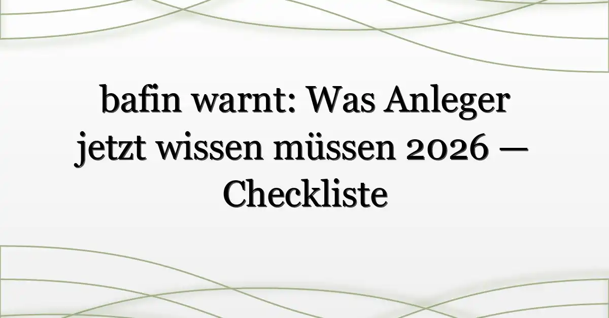 Haben Sie die jüngste Mitteilung schon gesehen und fragen sich: Was bedeutet “bafin warnt” konkret für mein Portfolio? Viele Anleger stehen jetzt vor Entscheidungen — und manche treffen die falschen. In meiner Praxis sehe ich, dass schnelle Reaktionen ohne Prüfung mehr Schaden anrichten als Abwarten mit Plan. Dieser Text erklärt, warum die Warnung gerade jetzt aufkommt, wer betroffen ist, typische Fehler und eine klare Checkliste mit Prioritäten.