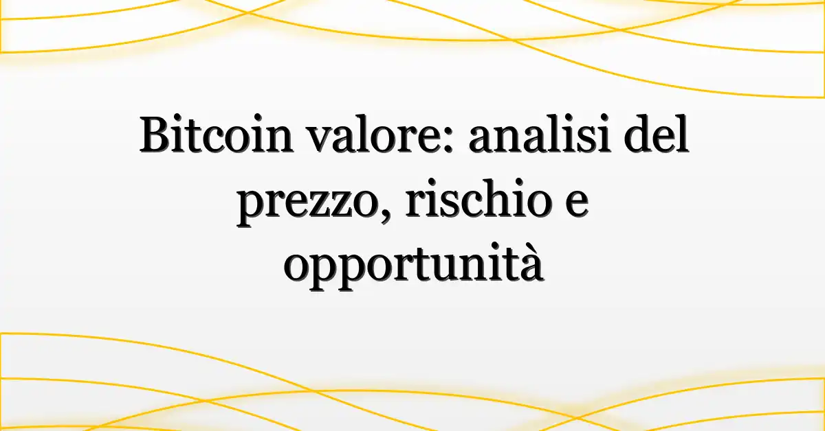 Per “bitcoin valore” intendo il prezzo di mercato espresso in euro (o dollari) e la valutazione del suo ruolo in portafoglio, tenendo conto di fondamentali on-chain, domanda istituzionale e metriche di rischio.