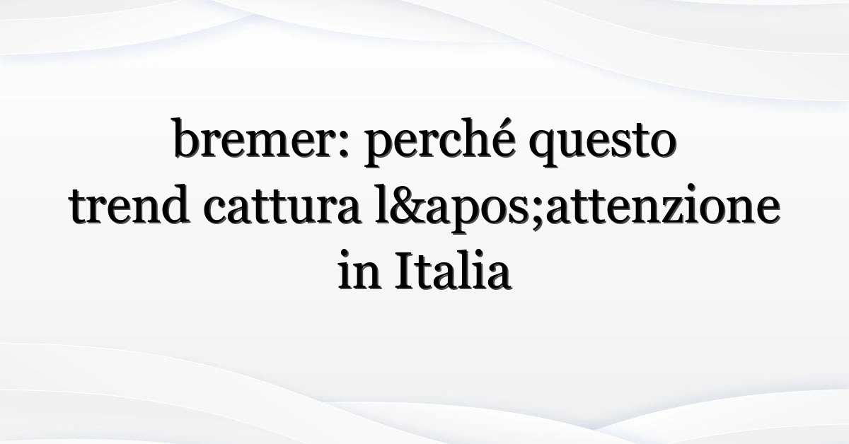 In sintesi: (1) “bremer” è diventato popolare per motivi multipli, spesso legati ai social; (2) l’audience principale è giovane e media-savvy, ma anche professionisti cercano contesto; (3) verifica sempre le fonti e resta critico.