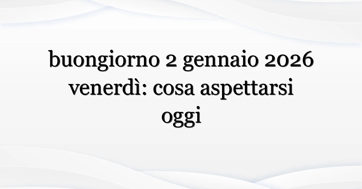 Buongiorno: se oggi hai digitato “buongiorno 2 gennaio 2026 venerdì”, non sei l’unico. All’inizio della settimana festiva che segue Capodanno molte persone cercano un mix di auguri, aggiornamenti pratici e spunti per rimettersi in moto. In questo pezzo esploro perché la query è esplosa, chi la cerca e cosa conviene sapere — dal meteo ai trasporti, dalle tradizioni locali alle idee per condividere un messaggio originale. Troverai consigli concreti per iniziare il 2026 con il piede giusto.