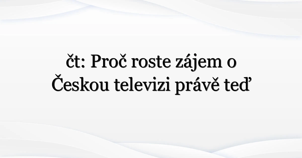 Hned na úvod: čt už není jen zkratka v TV průvodci. Najednou ji lidé vyhledávají častěji — kvůli novému pořadu, politickému sporu nebo prostě proto, že se nějaké momenty z vysílání staly virálními. V tomto textu se podíváme na to, proč právě teď roste zájem o čt, kdo hledá informace, co je pod emocionálním nábojem a jak to může ovlivnit každodenní sledování (a možná i financování) veřejnoprávního média.
