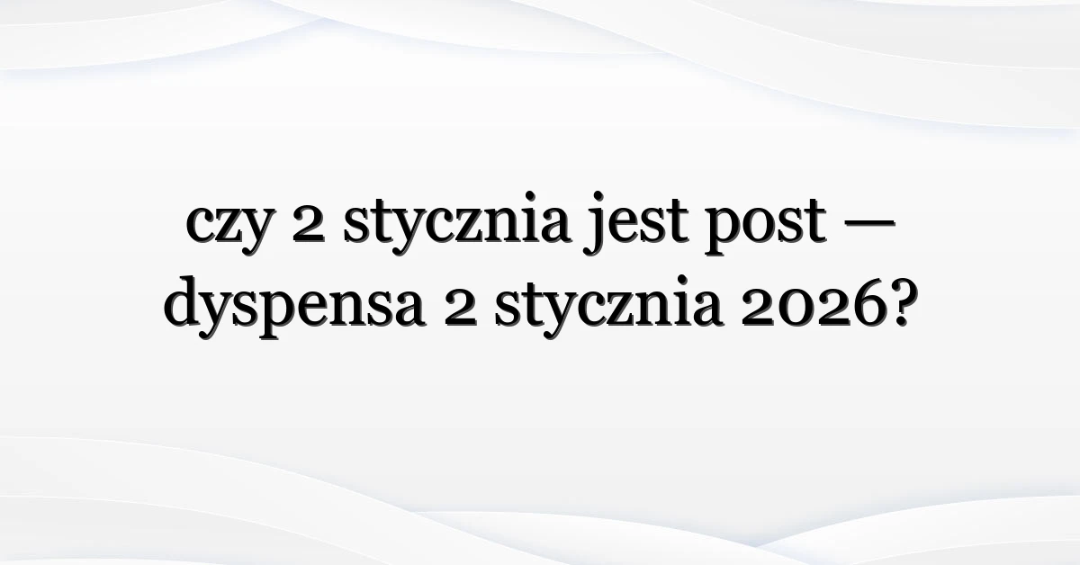 Czy 2 stycznia jest post? To pytanie pojawiło się w wyszukiwarkach i na forach religijnych po fali postów i wiadomości sugerujących, że może zostać ogłoszona dyspensa 2 stycznia 2026. W praktyce wiernych interesuje: czy trzeba zachować w tym dniu post, kto może otrzymać zwolnienie i skąd brać oficjalne informacje. W tym artykule sprawdzam, co mówią źródła kościelne, jakie są precedensy i jakie praktyczne decyzje mogą podjąć parafie — a także jak post i dyspensa różnią się pod względem praktycznym.