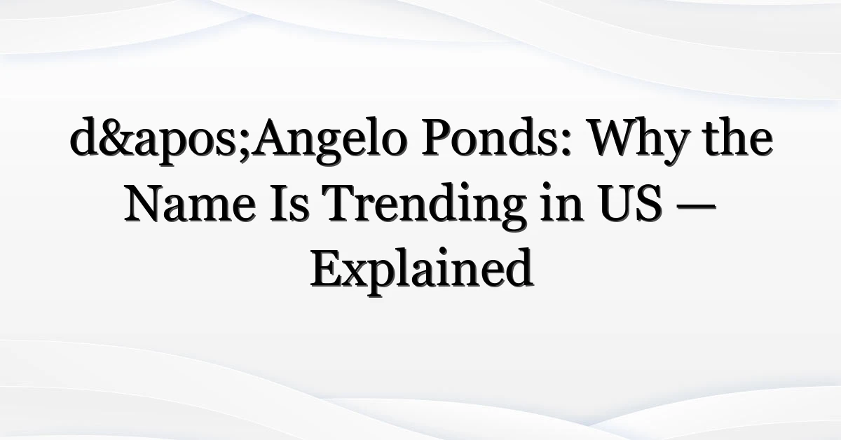 Something odd and oddly specific is climbing search charts: d’angelo ponds. At first glance it’s a name—maybe a person, maybe a place—but right now Americans are typing it into search bars fast enough to create a visible trend. Why the sudden interest? A mix of social amplification, a few local stories, and a handful of shareable images and mentions online has nudged this phrase into national view. Now, here’s where it gets interesting: the conversation is equal parts curiosity, nostalgia, and — surprisingly — debate about naming, ownership and local history.