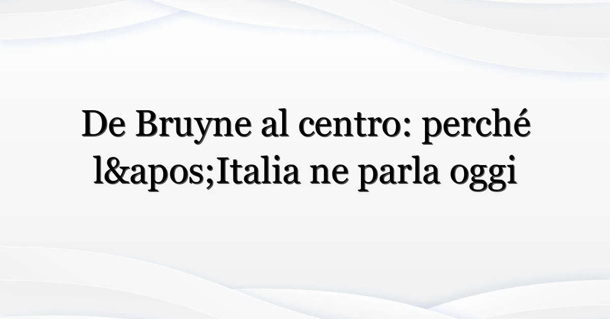De Bruyne è tornato a essere un argomento caldo tra i tifosi italiani e non è un caso. Nei giorni scorsi il nome di de bruyne ha fatto il giro dei social e delle testate sportive: tra prestazioni chiave, possibili movimenti di mercato e qualche dubbio fisico, l’attenzione è salita. Ora, ecco perché tutto questo conta per i lettori italiani, cosa cercano e cosa possono aspettarsi nei prossimi giorni.