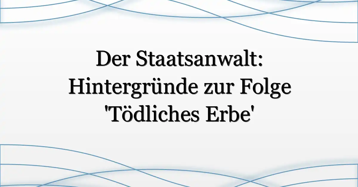 Der Staatsanwalt ist eine etablierte deutsche Krimiserie mit Fokus auf Ermittlungen, Gerichtsdynamik und moralischen Dilemmata. Die Episode „Tödliches Erbe“ bringt Erbschaftsthematik in Kombination mit einem kriminalistischen Kern zusammen und verwebt familiäre Geheimnisse mit einem juristischen Spannungsbogen. Das Thema Erbe als Motiv ist nicht neu, doch die Folge kombiniert persönliche Offenbarungen mit einem überraschenden Tatverdacht — das macht sie erzählerisch dichter.