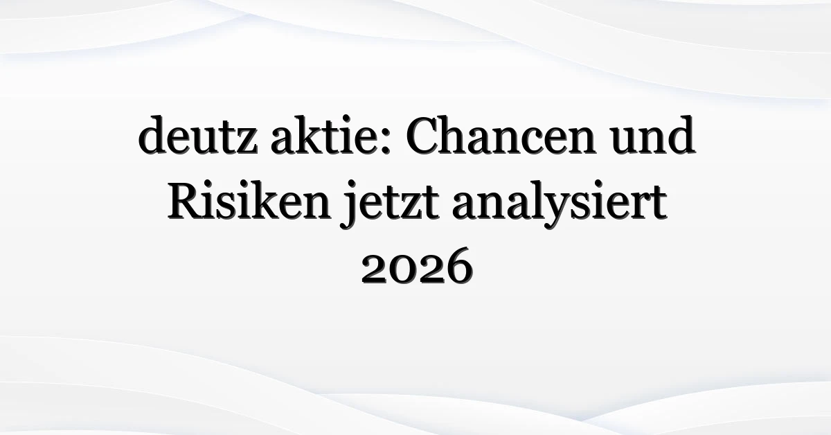 Kurz gesagt: Die deutz aktie ist eine Mischung aus zyklischem Wert und strukturellen Herausforderungen. Wer investiert, sollte klar zwischen kurzfristigem Trading und langfristiger Positionierung unterscheiden und auf harte Kennzahlen statt auf Schlagzeilen setzen.