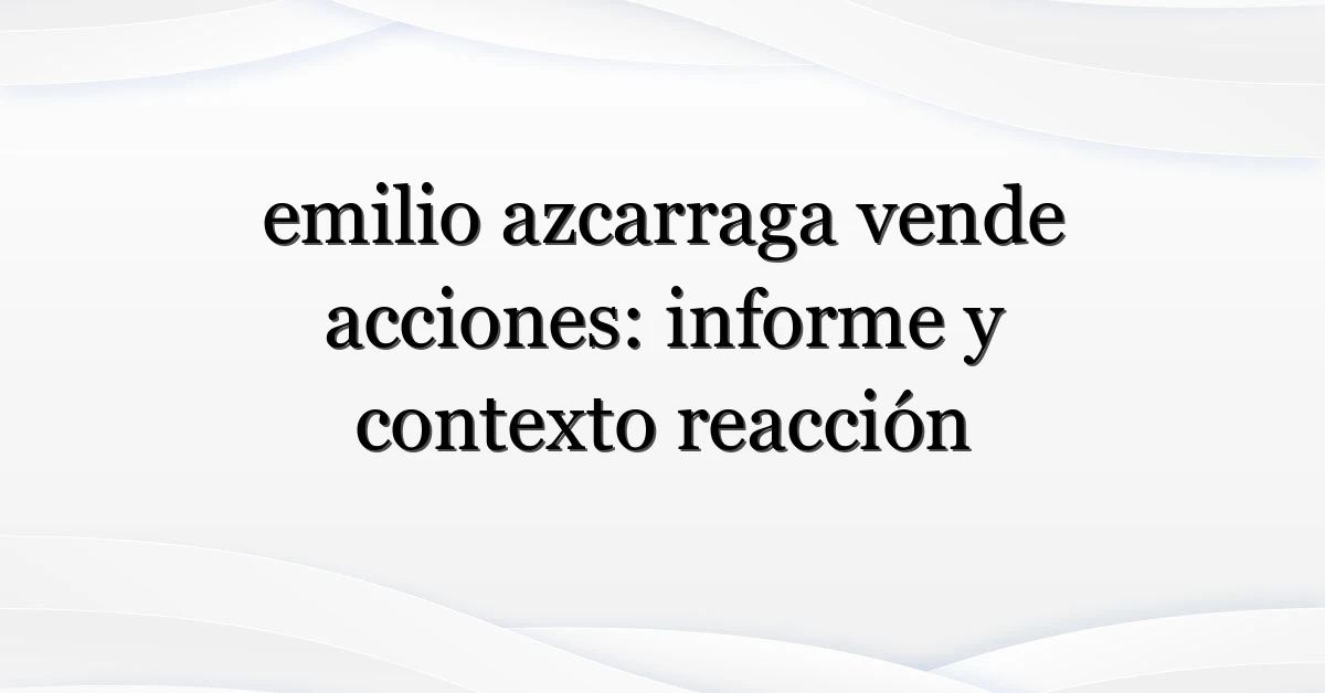 La frase “emilio azcarraga vende acciones” refleja la curiosidad (y la preocupación) del público por cambios en empresas que influyen en la agenda mediática. Verificación y calma: dos buenos hábitos hoy. Si algo concreto aparece, se confirmará por canales oficiales; hasta entonces, vigila las fuentes fiables y evita decisiones apresuradas.