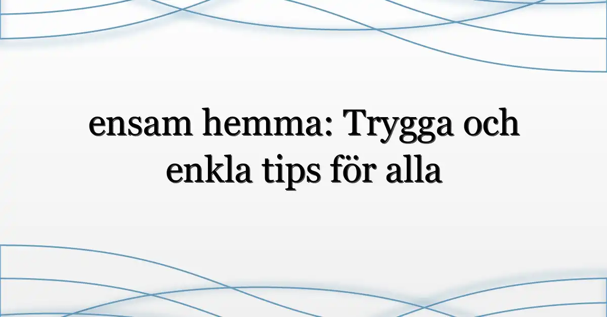 ensam hemma är mer än ett tillstånd — det är en vardagsfråga för många i Sverige just nu. I den här texten får du konkreta, pragmatiska råd för trygghet, social kontakt och snabba vinster som faktiskt funkar.