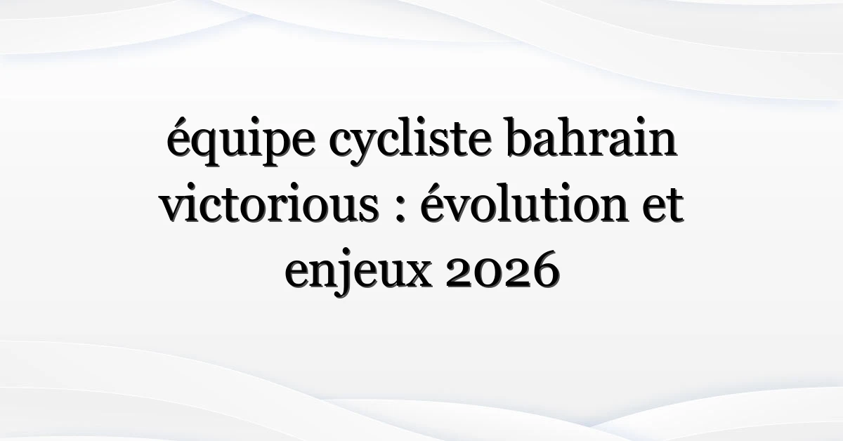 L’équipe cycliste bahrain victorious est une formation professionnelle de niveau WorldTeam connue pour ses ambitions dans les grands tours et les classiques. Fondée avec un budget conséquent, elle attire des coureurs expérimentés et des talents prometteurs. Pour un contexte factuel et historique, consultez la fiche dédiée sur Wikipedia et les communiqués officiels sur le site de l’équipe (Bahrain Victorious).