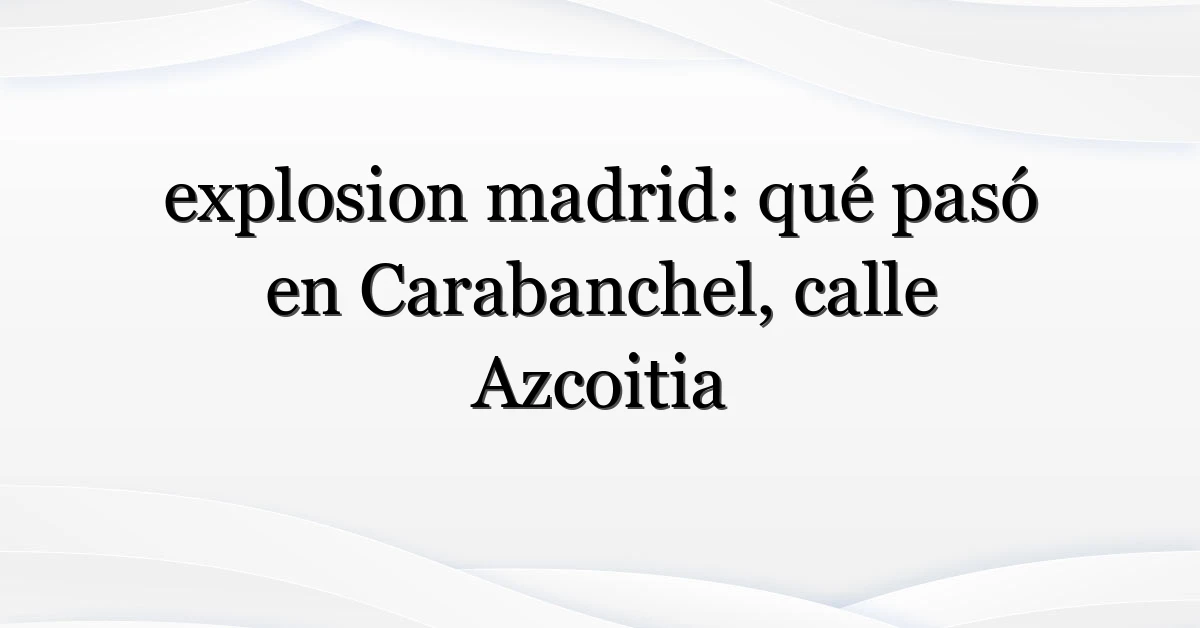 La noticia que está moviendo a Madrid hoy aparece como “explosion madrid” en las búsquedas: una explosión en Carabanchel que dejó calles acordonadas, alarma vecinal y preguntas por respuestas rápidas. En la mañana del incidente, residentes de la calle Azcoitia escucharon un estallido fuerte y vieron daños visibles en fachadas; desde entonces la atención mediática y ciudadana no ha bajado.