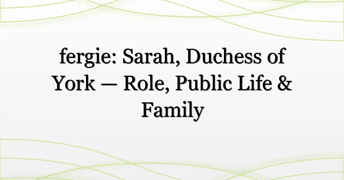 “Fergie” is the widely used informal name for Sarah, Duchess of York, a public figure who has moved between charity work, media projects, and long-running public scrutiny since her marriage into the royal family. Born Sarah Ferguson, she has remained visible partly because of her daughters — Princess Eugenie and Princess Beatrice — and partly because she has cultivated a career that straddles public-facing brands and activism. For a factual baseline, the Wikipedia biography provides a compact timeline and references to primary sources: Sarah, Duchess of York — Wikipedia.