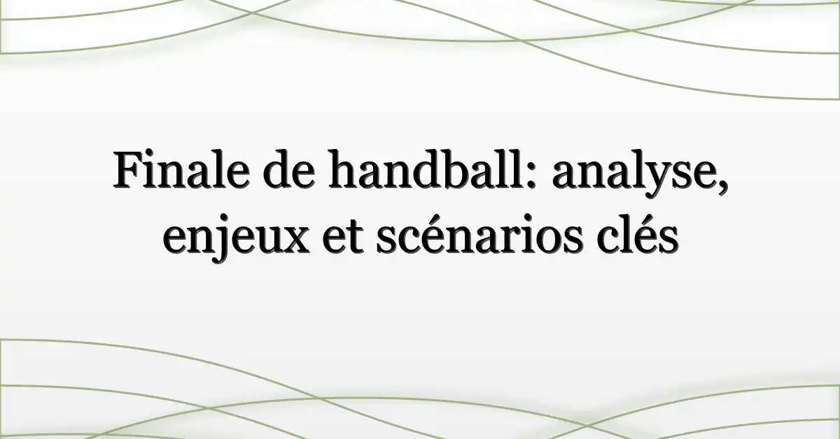 La finale de handball 2026 se décidera sur la capacité d’une équipe à contrôler le tempo, limiter les pertes et profiter des moments clés en supériorité numérique. Si vous ne retenez qu’une chose : regardez le gardien au match‑décisif — il vous dira souvent qui l’emportera.