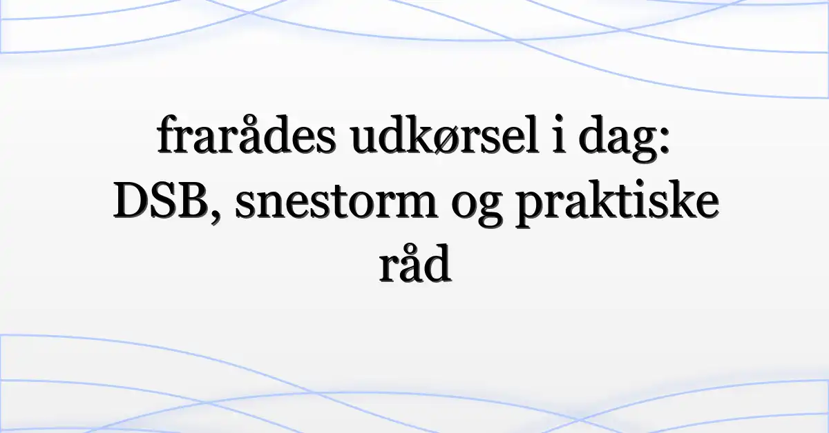 frarådes udkørsel i dag er beskeden mange ser på vejsteder og sociale medier, når sne og vind presser trafikken. Det er frustrerende at stå med en kalender fyldt med ærinder og usikkerhed om, hvorvidt man skal køre, tage toget eller blive hjemme — dette gennemgår jeg her med fokus på praktiske beslutninger, kilder til live-opdateringer og hvordan du minimerer risiko i en DSB-snestorm-situation.