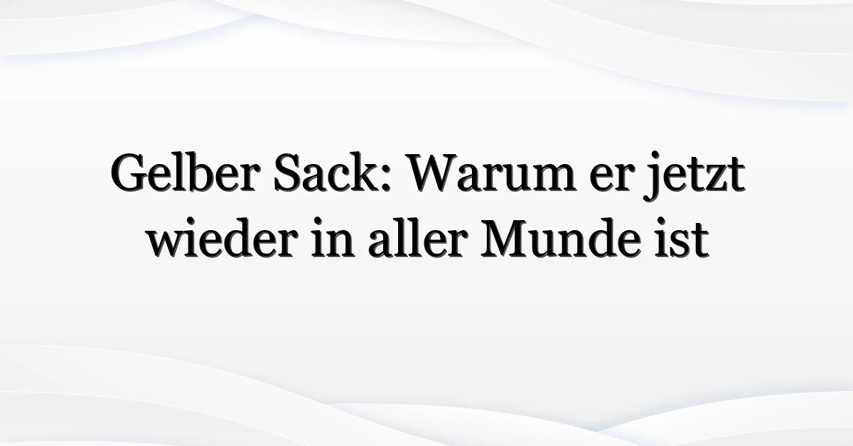 Der gelber Sack ist in Deutschland kein bloßes Plastiksäckchen mehr — er steht für die größere Debatte um Recycling, Verpackungsabfall und kommunale Logistik. Jetzt fragen sich viele: Was gehört wirklich hinein? Warum diskutieren Gemeinden über die Einführung der Gelben Tonne? Und ändert sich durch neue Regeln etwas für mich als Verbraucher? Dieser Text erklärt, warum das Thema gerade trendet, räumt mit Mythen auf und gibt konkrete Tipps für den Alltag.
