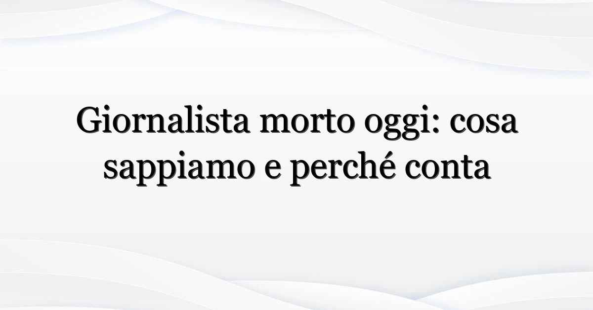 Un giornalista morto oggi è una notizia che ferisce la collettività: la frase “giornalista morto oggi” sta impattando ricerche e social media perché solleva domande immediate — chi era, cosa è successo, e perché importa. In questo articolo provo a mettere ordine: ricapitoliamo le informazioni verificate, segnaliamo cosa resta da verificare e offriamo strumenti pratici per seguire l’evolversi della vicenda (senza cedere a rumor o speculazioni).