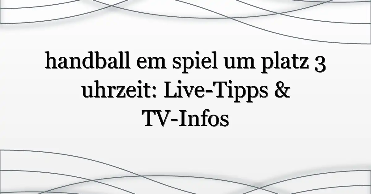 Das Spiel um Platz 3 bei der Handball-EM wird normalerweise am selben Tag wie das Finale angesetzt; die genaue Anstoßzeit legt der Veranstalter zusammen mit dem TV-Sender fest. Für die verlässlichsten Angaben checke die offiziellen Seiten oder die Senderankündigungen.
