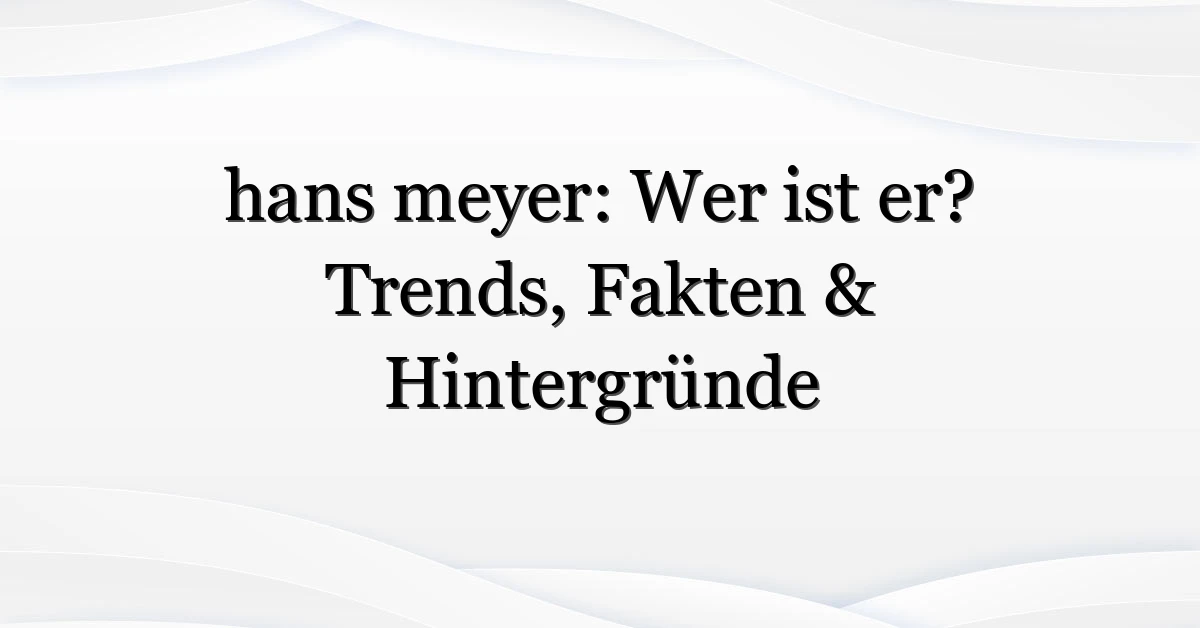Wer ist dieser “hans meyer” — und warum tippen plötzlich so viele Menschen seinen Namen ein? In den letzten Tagen ist die Suchanfrage “hans meyer” in Deutschland spürbar angestiegen. Ob es um den Entdecker, den Fußballtrainer, den Schauspieler oder einfach eine virale Erwähnung geht: Leser wollen schnelle, verlässliche Antworten. Ich schaue mir hier die möglichen Ursachen an, erkläre, welche Personen gemeint sein könnten, und gebe praktische Schritte, wie Sie die richtige Information finden.