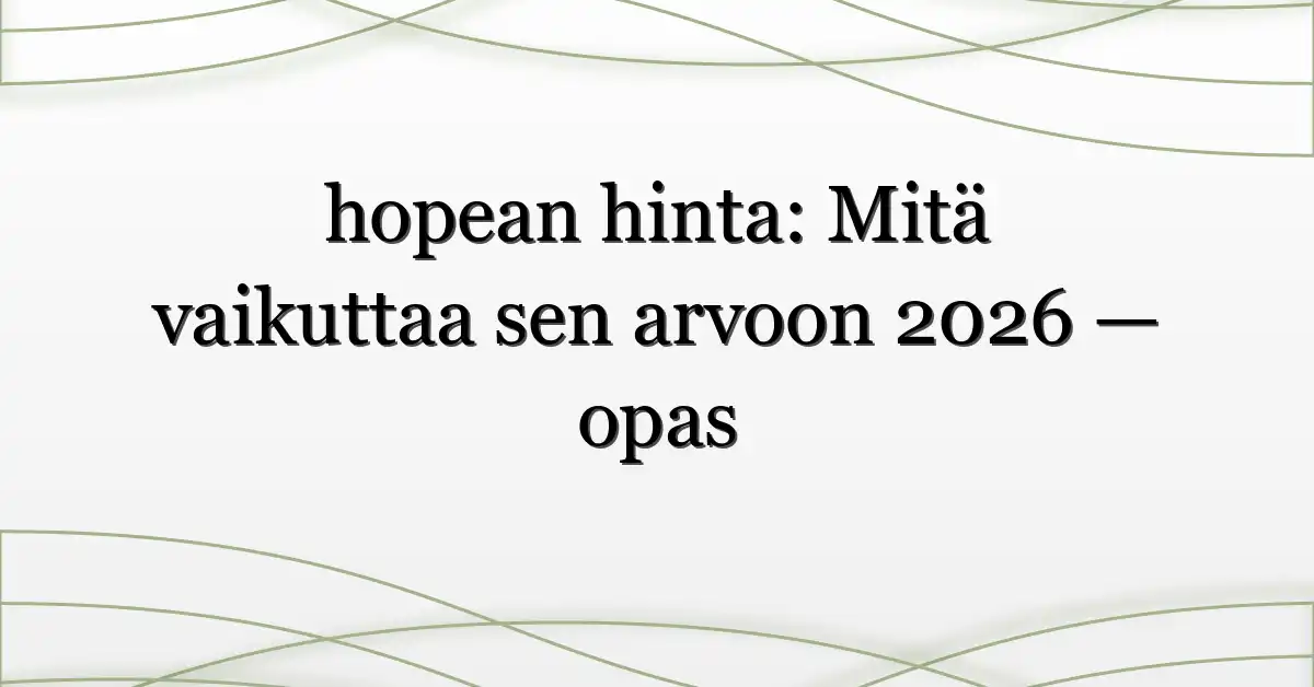 hopean hinta on noussut monen suomalaisen hakulistan kärkeen — ei pelkästään siksi, että korut kiinnostavat, vaan koska hopea yhdistää teollisuuden kysynnän, sijoittajien tunteet ja maailmanvaluuttojen liikkeet. Älä huolestu: tämä opas selittää selkeästi, miksi hopean hinta heiluu, mitä se tarkoittaa sinun kukkarollesi ja miten voit seurata kehitystä järkevästi.