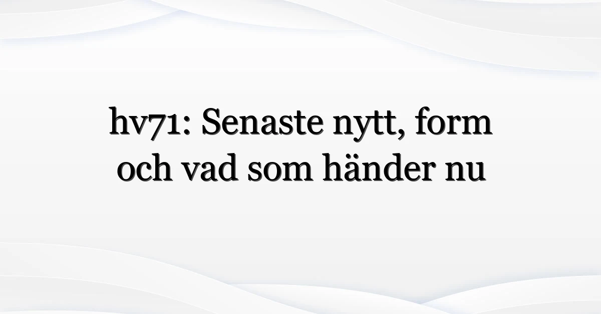 hv71 är ett lag som alltid väcker känslor i Sverige. Oavsett om du är trogen supporter eller bara nyfiken på trenden, är det en bra tid att följa med i utvecklingen. Håll koll på officiella kanaler, granska källor och njut av spelet — för ibland är det just dramatiken på isen som gör sporten så svår att släppa.