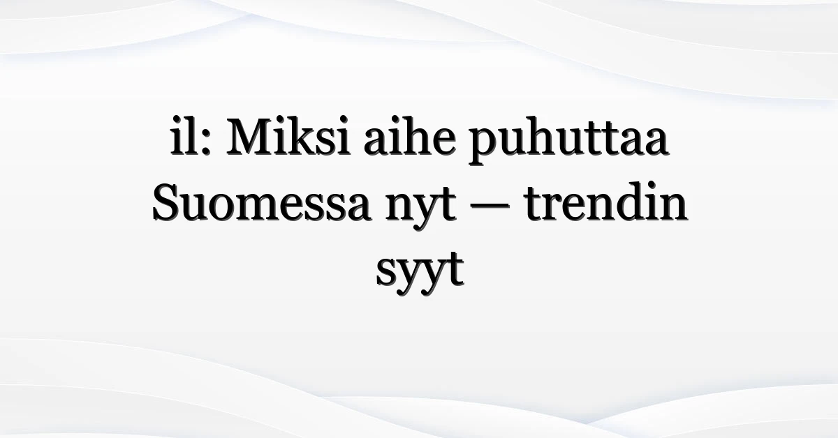 Il on äkillisesti noussut suomalaisten hakulistoille ja aiheuttaa keskustelua: mistä tarkalleen ottaen on kyse, kuka puhuttaa ja miksi juuri nyt? Kun Yle alkoi näkyvämmin käsitellä aihetta, kiinnostus kasvoi nopeasti—hakumäärät nousivat ja somessa jakaminen kiihdytti trendiä. Tässä artikkelissa puran il-trendin taustoja, katson kuka etsii tietoa, mikä tunteen veturi on ja mitä konkreettista lukija voi tehdä seuraavaksi.