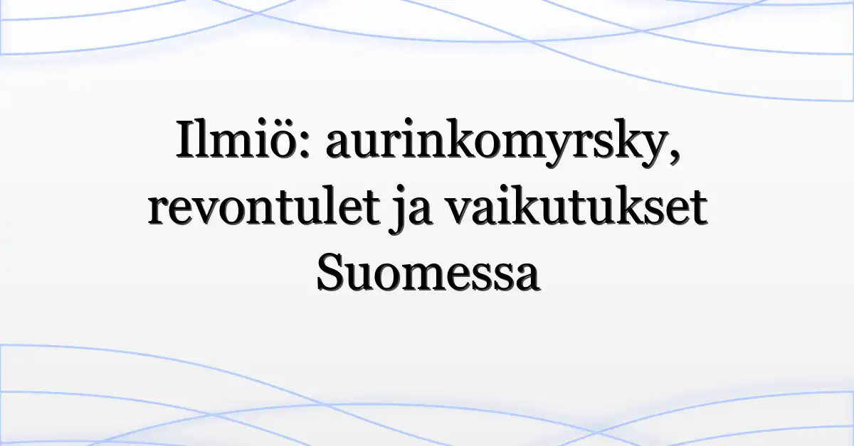 Aurinkomyrsky on ilmiö, joka voi tuoda kauniita revontulia mutta myös teknisiä haasteita. Suomessa vaikutukset ovat usein paikallisia ja ennakolta varautumalla riskit pienenevät. Pysy kuulolla ja älä unohda nauttia taivaasta — joskus luonnon voimat näyttävät parhaat puolensa.