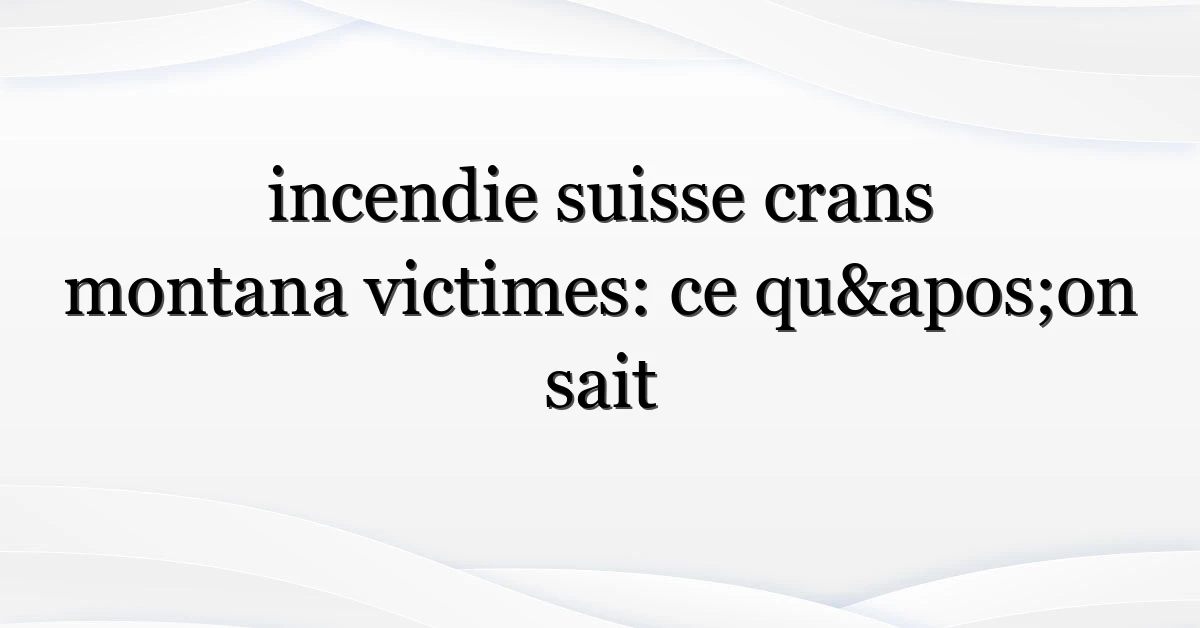 L’incendie suisse Crans-Montana victimes est devenu un sujet suivi de près par les médias et les internautes (notamment au Canada) — et pour cause: des incendies en zones touristiques soulèvent rapidement des questions sur la sécurité, les pertes humaines possibles et l’impact sur les communautés locales. Maintenant, voici où ça devient sensible: les détails évoluent, les autorités suisses publient des mises à jour et les familles cherchent des réponses. Dans cet article je rassemble les éléments publics, j’explique pourquoi ça attire l’attention et je fournis des conseils pratiques pour les voyageurs ou proches concernés.