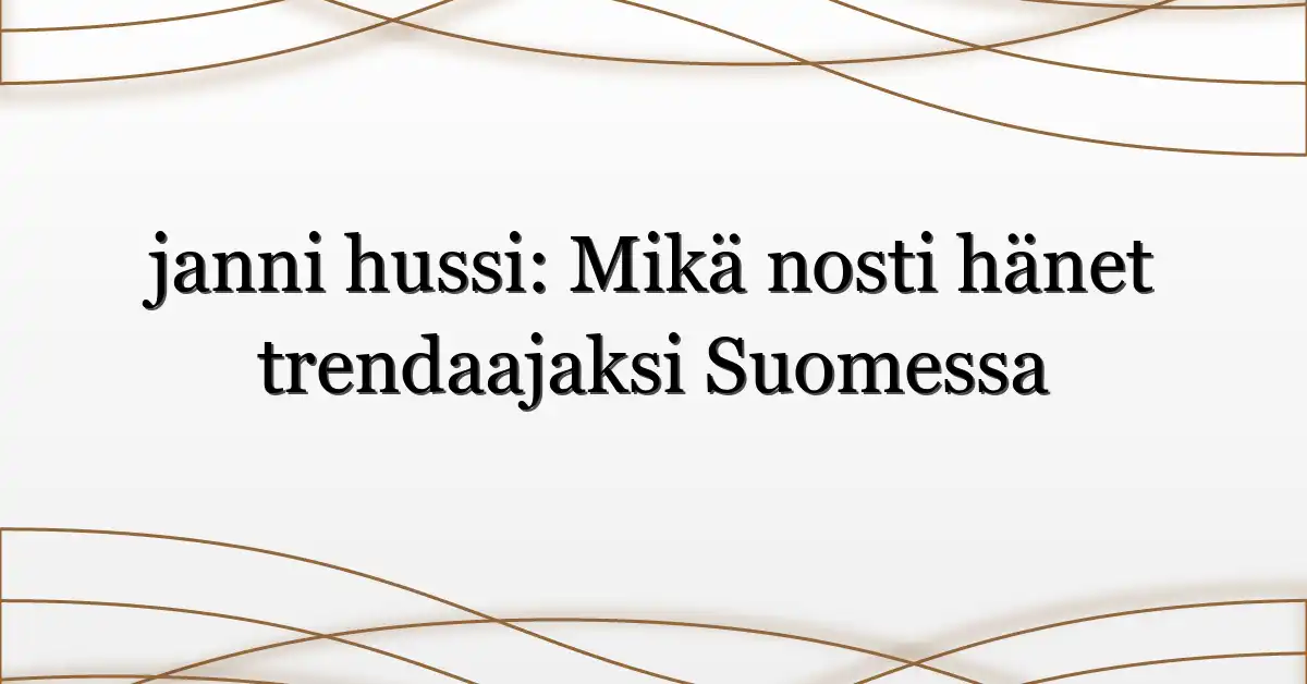 Yllättikö hakupiikki? Se ei ole sattumaa. Janni Hussi on noussut hakulistojen kärkeen Suomessa juuri nyt, ja syitä on useita: näkyvä somepresenssi, tuore mediaesiintyminen sekä uusi yritys- tai brändiyhteistyö, joka nostaa keskustelun pintaan. Tässä artikkelissa puran ilmiötä auki: miksi janni hussi kiinnostaa, ketkä hakevat lisätietoa, mikä tunnesyöte ajaa keskustelua eteenpäin ja mitä seuraavat askeleet voivat olla sekä yksityisille seuraajille että brändeille.