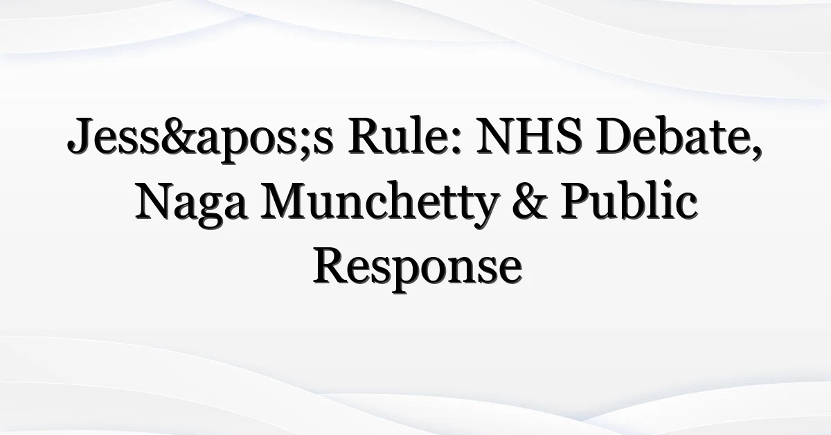 Short answer: it’s not a single law. Think of it as a cultural shorthand — a set of expectations about how to report, discuss or act on sensitive health stories connected to the NHS. The phrase emerged organically: a named incident prompted a suggestion that there should be a clearer guideline — someone called Jess (in various reports) became the symbol for that push. The term “jess rule” now crops up in headlines, tweets and broadcast chatter.