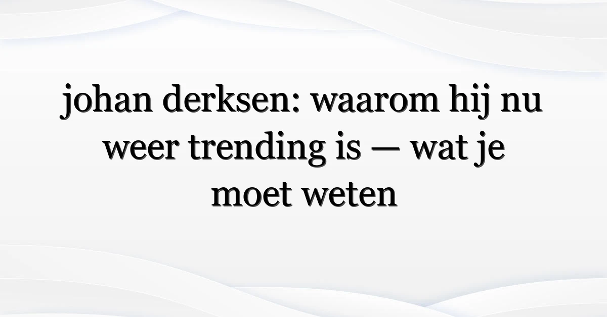 Johan Derksen duikt weer op het netvlies van veel Nederlanders. De naam “johan derksen” circuleert op sociale media, in nieuwsuitzendingen en op zoeklijsten — en dat betekent dat er iets speelt. Misschien is het een oude uitspraak die opnieuw opdook, misschien een nieuw interview of gewoon het onvermijdelijke debat over zijn positie in de Nederlandse mediaruimte. Wat helder is: mensen willen context, feiten en wat dit voor het grotere medialandschap betekent.