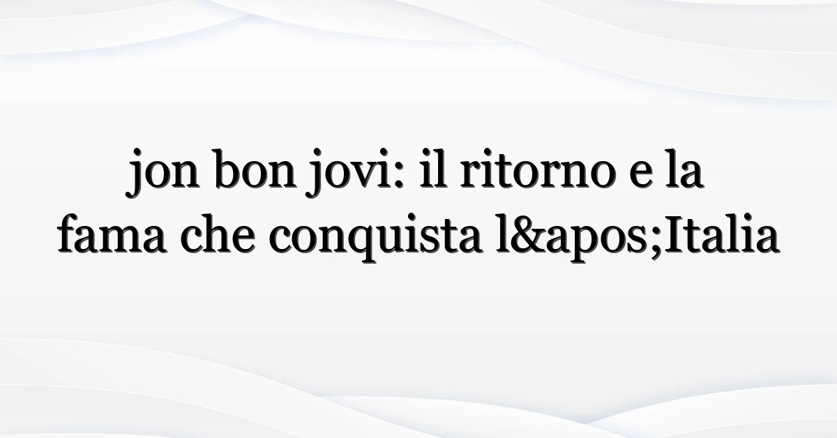 Jon Bon Jovi è tornato a occupare le ricerche in Italia. Se ti stai chiedendo perché il nome di questo artista continua a emergere nelle tendenze, la risposta è un mix di annunci di tour (con possibili tappe italiane), interviste che sono diventate virali e attività benefiche che risuonano particolarmente con il pubblico italiano. In questo pezzo esploro cosa sta succedendo adesso, chi sta cercando jon bon jovi in Italia, e cosa significa per fan, organizzatori e curiosi. Pronto per una panoramica pratica e aggiornata? Cominciamo.