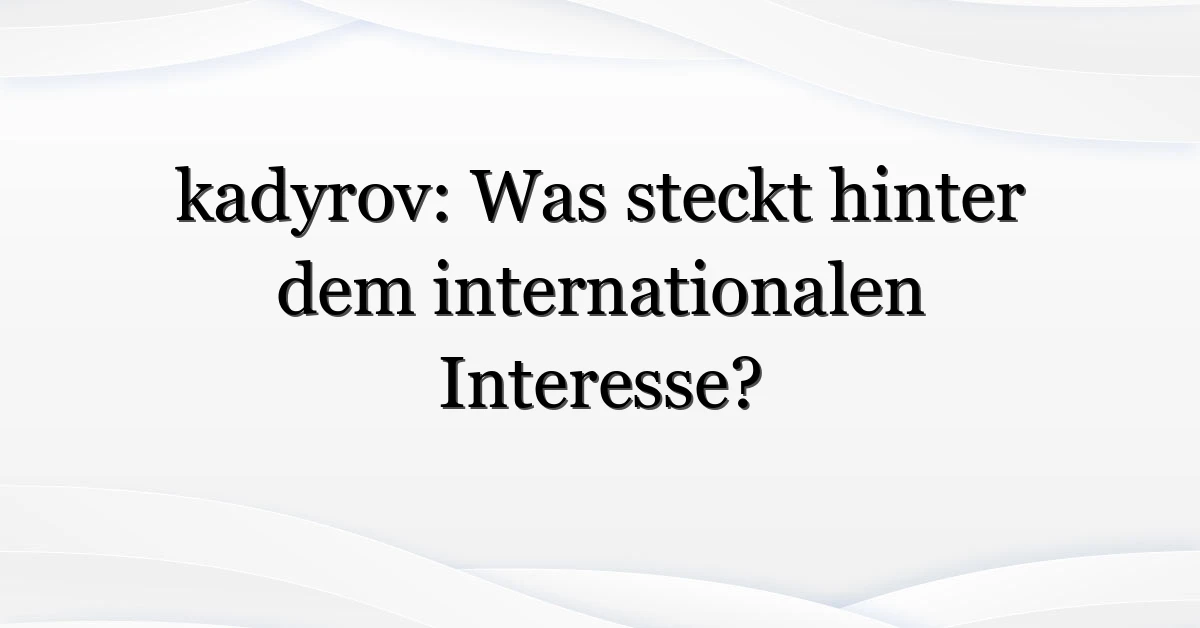 Kurz zusammengefasst: kadyrov ist aus mehreren Gründen aktuell relevant — politische Signale, mediale Aufmerksamkeit und Menschenrechtsfragen. Wer informiert bleibt, versteht die Verbindungen besser und kann fundierter urteilen. Ein Thema, das uns noch eine Weile beschäftigen dürfte.