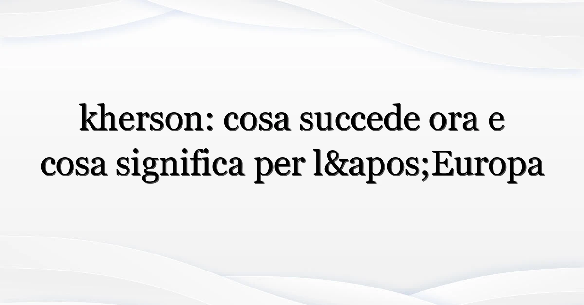Negli ultimi mesi ci sono stati annunci e movimenti che hanno spinto le ricerche su kherson. Per contesto storico e geografico, vedi la scheda essenziale su Wikipedia: Kherson. Per aggiornamenti giornalistici e cronache, fonti come Reuters hanno seguito gli sviluppi sul territorio.