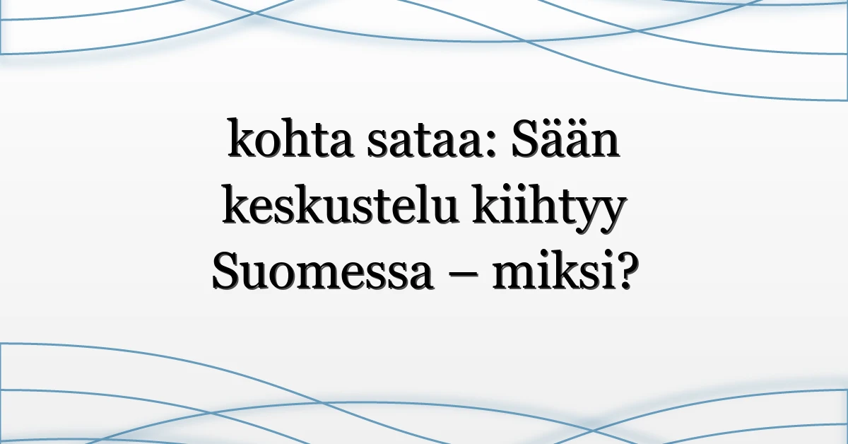 Kun joku kirjoittaa tai huikkaa “kohta sataa”, se pysäyttää huomiomme — ja juuri siksi ilmaisu on nyt trendissä Suomessa. Usein kyse ei ole vain ennusteesta, vaan siitä, miten tieto leviää nopeasti sosiaalisessa mediassa, miten paikalliset sääpalvelut reagoivat ja mitä vaikutuksia äkillisellä sateella voi olla arkeen. Tässä artikkelissa pureudumme siihen, miksi “kohta sataa” kiinnostaa juuri nyt, kenelle tämä on tärkeää ja mitä voit tehdä, kun sade uhkaa muuttua todellisuudeksi.
