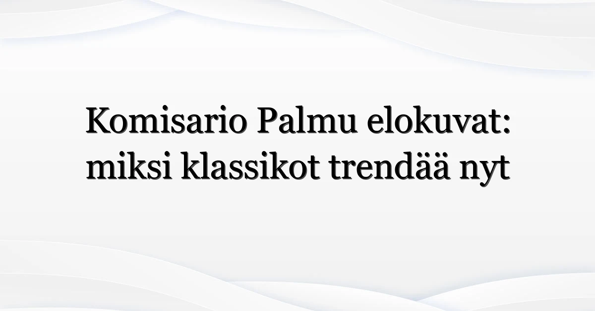 Komisario Palmu elokuvat ovat taas puheenaiheena — ja ei ihme. Nämä Mika Waltarin luoman hahmon ympärille rakennetut rikoselokuvat täyttävät paitsi nostalgiaa myös yllättäviä nykytulkinnan mahdollisuuksia. Nyt, kun vanhat filmit löytyvät helpommin suoratoistosta ja restauroituina versioina, kysymys kuuluu: miksi juuri nyt kiinnostus roihahti uudelleen? Tässä artikkelissa kartoitamme trendin syitä, elokuvien sisällölliset vahvuudet, missä ne voi katsoa ja mitä tämä kertoo suomalaisesta elokuvamausta vuonna 2026.