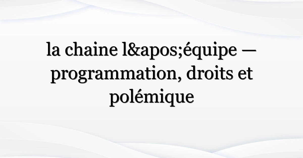 Pour un aperçu institutionnel et historique de L’Équipe, consultez la fiche officielle sur Wikipédia, et pour suivre l’offre actuelle, la page officielle de la chaine reste la référence : lequipe.fr.