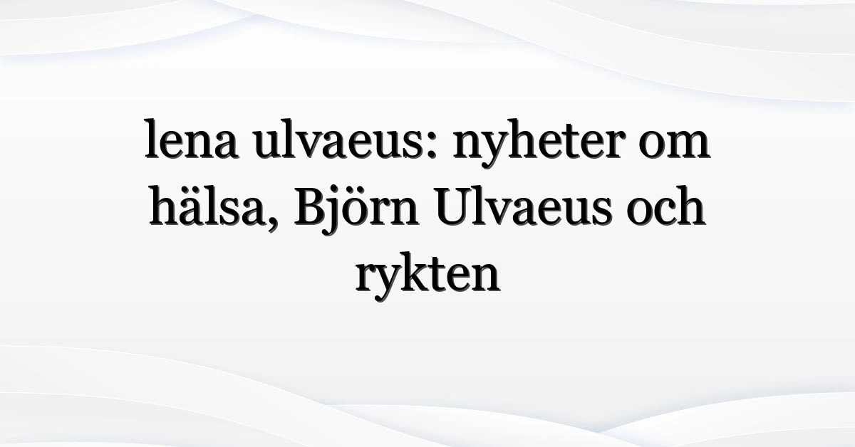 Lena Ulvaeus har plötsligt blivit ett av de hetaste sökorden i Sverige. Varför? Dels för att hennes namn knyts samman med kända uppgifter om familjens bakgrund och dels för att det cirkulerat oroande frågor om hennes hälsa — sökningar som “lena ulvaeus sjukdom” och “lena ulvaeus sjuk” visar tydligt att många vill veta mer. Nu, här kommer en saklig genomgång: vad som faktiskt bekräftats, vad som är rykten, och varför kopplingen till Björn Ulvaeus spelar roll i medielandskapet.
