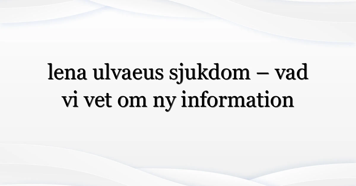 Nyheten om lena ulvaeus sjukdom har under de senaste dagarna synts i söktrenderna i Sverige. Varför trendar det? Dels är det en kombination av sociala medier, ett par tidiga rapporter (ofullständiga) och människors naturliga oro när en offentlig person nämns i samband med hälsa. Söktermen lena ulvaeus sjuk används ofta i samma veva — folk vill veta om uppgifterna stämmer, vem som sagt vad och om det finns officiella uttalanden.