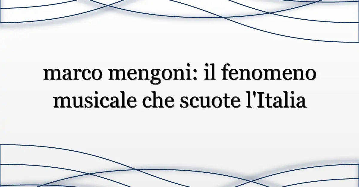Marco Mengoni è di nuovo al centro dell’attenzione in Italia: c’è curiosità, discussione sui social e molte ricerche che cercano conferme su tour, nuove canzoni e il suo impatto culturale. Se ti stai chiedendo “perché ora?” — sei nel posto giusto. In questo articolo analizziamo perché il nome marco mengoni sta trending, chi lo sta cercando, cosa significa per la scena musicale italiana e cosa puoi fare se sei fan o professionista del settore.