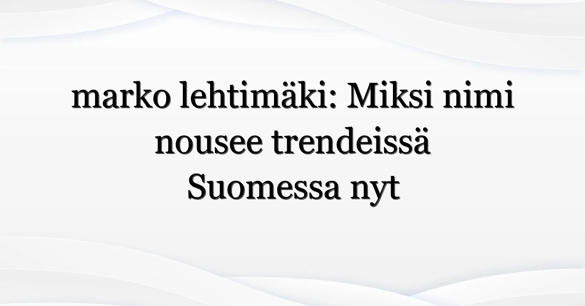 Kun hakukenttiin ilmestyy yhtäkkiä marko lehtimäki, moni pysähtyy ja kysyy: mitä nyt tapahtui? Hakutrendit kertovat usein yhdistelmän uutisvirtaa, sosiaalisen median keskustelua ja uteliaisuutta. Tässä artikkelissa katson, miksi marko lehtimäki on juuri nyt puhuttava aihe Suomessa, ketkä etsivät tietoa, ja mitä hakutuloksista voi päätellä (ja mitä ei).