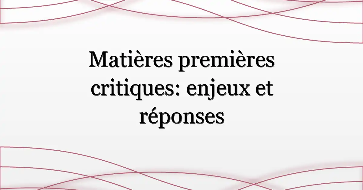 Vous voyez le même mot partout — dans les communiqués gouvernementaux, les réunions d’achats, et les briefs R&D : matières premières critiques. Pas une mode : c’est le point de tension entre ambitions industrielles (énergies propres, mobilité électrique) et réalités géopolitiques. Si vous gérez achats, stratégie produit ou politiques publiques, ce dossier vous concerne directement.
